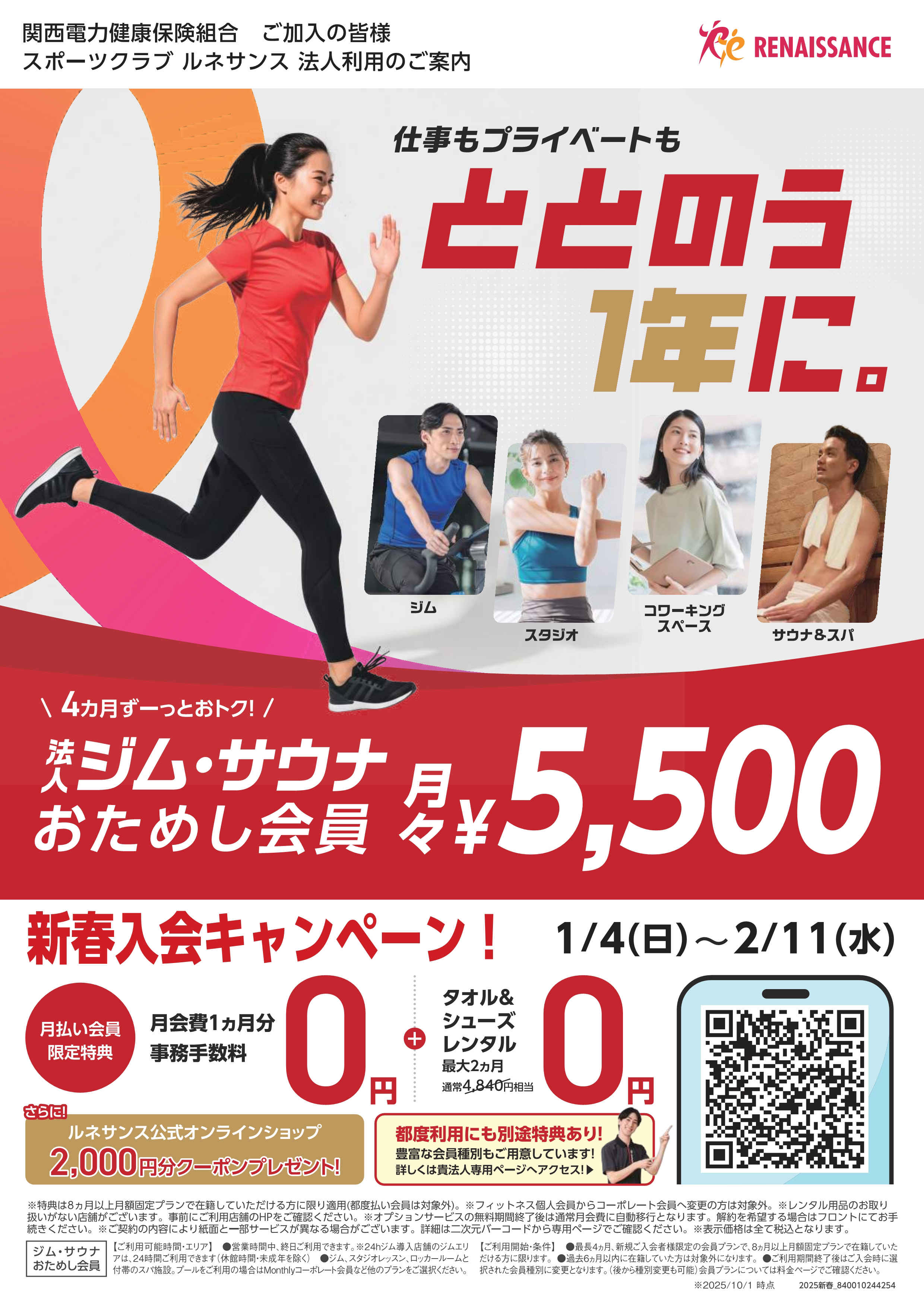 キャンペーン詳細等については、添付ファイルまたはルネサンスホームページをご覧ください。